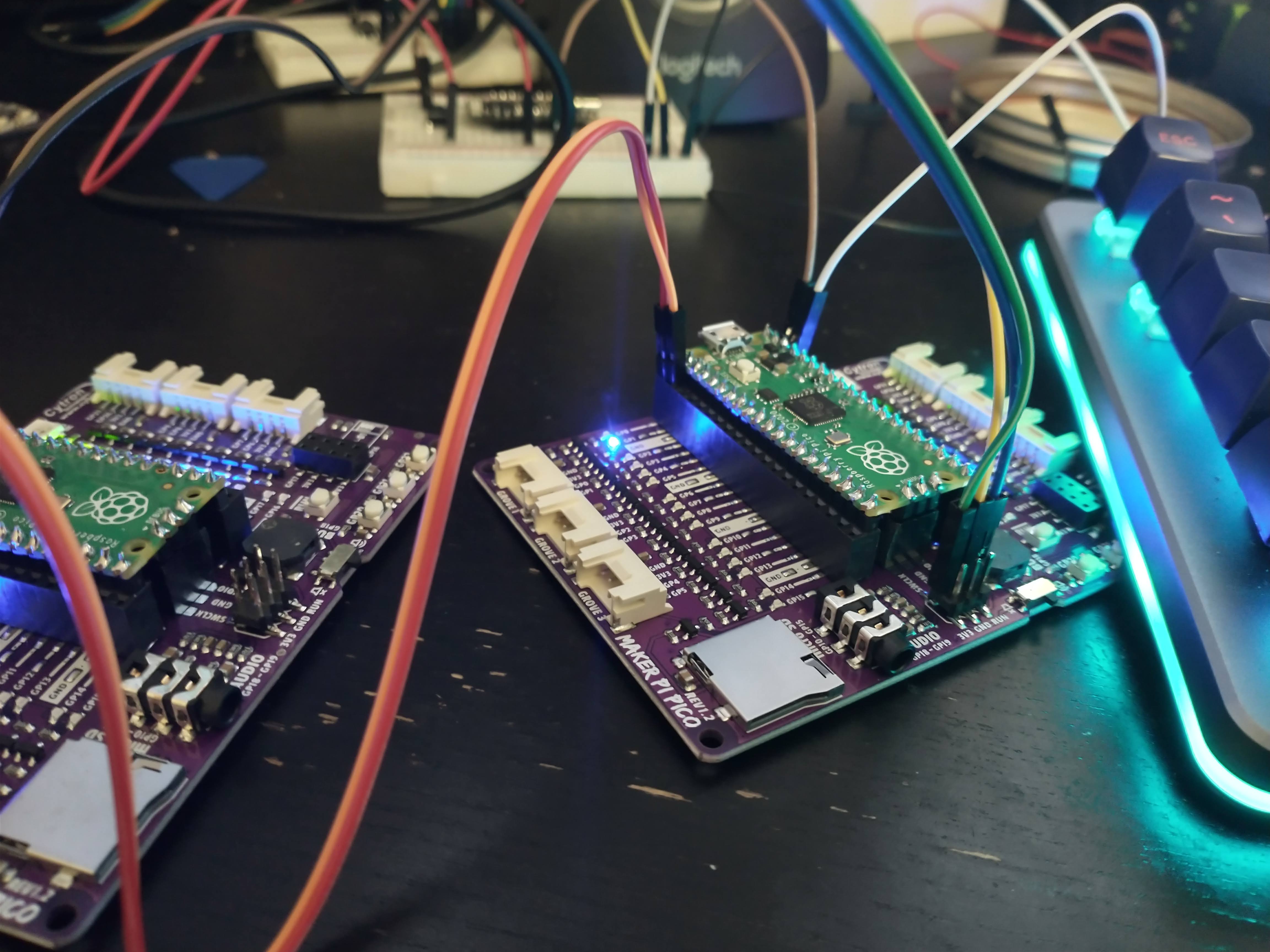 The problem, put shortly, is that the connection just wasn’t good enough between the picos. I’m not sure where the failure was - it could be in the carrier boards, it could’ve been in the dupont wires, it could’ve just been a weird fluke.